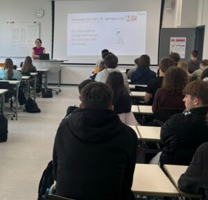 Um die Autoren kennenzulernen sind wir gemeinsam nach Aachen, Lüttich und Heerlen gefahren und haben dort unsere von den Autoren gestellten Hausaufgaben auf großer Bühne vorgestellt (sehr aufregend!) und in Workshops mit den anderen Schülerinnen und Schülern aus der Euregio gemeinsam gearbeitet. Wir vom CMG waren immer vorne mit dabei!